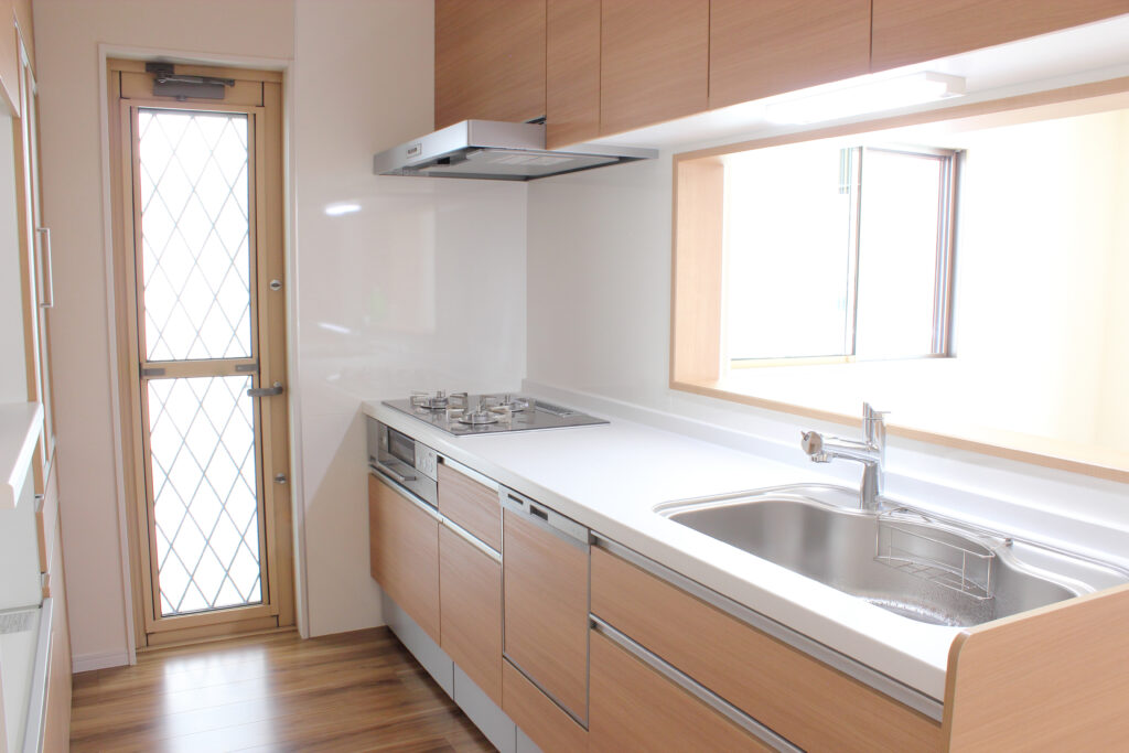 カウンターの取り付けが終わりましたら、水栓など水廻りの器具とガスコンロまたはIHヒーターを取り付けます。キッチンパネルがある場合は、キッチンパネルの端部とキッチン廻りにコーキングを施します。